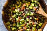 AVOCADO & BLACK BEAN SALAD Avocado, black beans, tomato, onion and cilantro dressed with olive oil, garlic and lime making this salad a ...